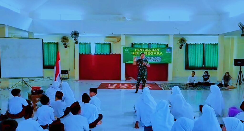 Dalam rangka membentuk karakter generasi muda dan meningkatkan jiwa nasionalisme, Satgas TNI Manunggal Membangun Desa (TMMD) Ke-119 Kodim 0602/Serang bekerjasama dengan Pemerintah Daerah Kabupaten Serang, menggelar  Penyuluhan Bela Negara kepada para Santri dan Santriwati, bertempat di Pondok Pesantren Modern Shohibul Muslim, Kecamatan Tunjung Teja, Kabupaten Serang Provinsi Banten, Sabtu, (24/2/2024).