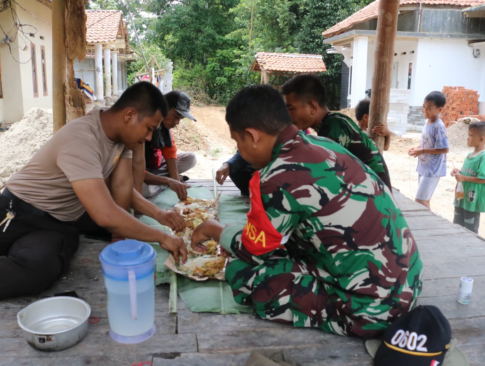 Kebersamaan Personel Satuan Penugasan (Satgas) TNI Manunggal Membangun Desa (TMMD) Ke-119 Kodim 0602/Serang, terus terjalin dengan baik dengan warga yang tampak terlihat melalui makan bersama, bertempat di Desa Bojong Pandan, Kecamatan Tunjung Teja, Kabupaten Serang, Provinsi Banten, pada Minggu (25/02/2024).