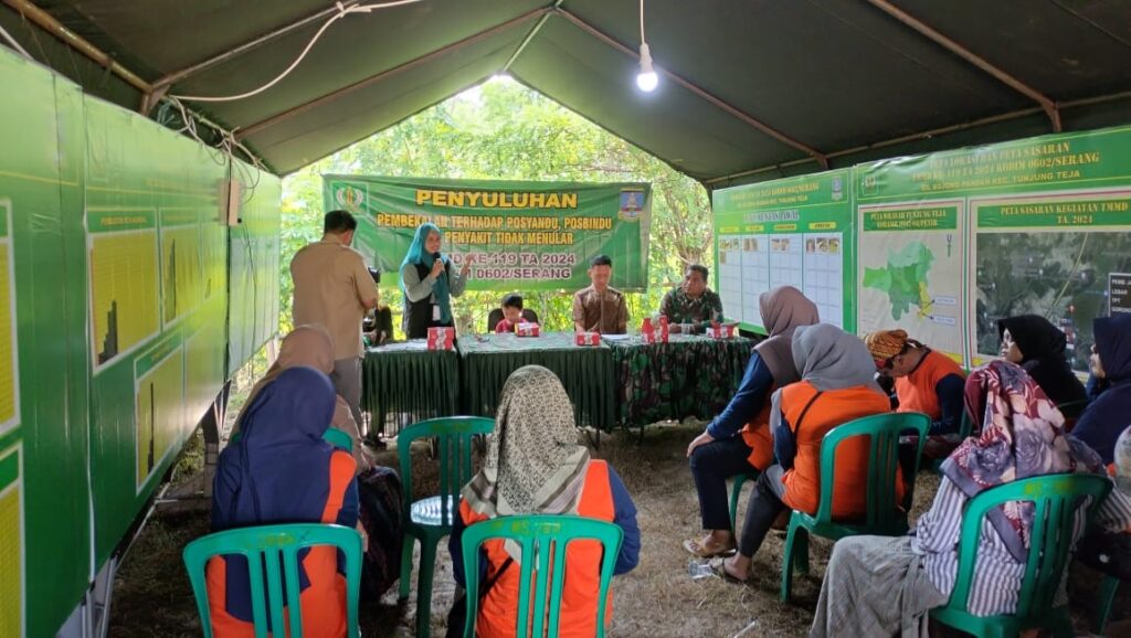 Penyuluhan pembekalan terhadap Posyandu dan Penyakit Tidak Menular menjadi salah satu topik materi yang dipilih dan disampaikan pada kegiatan TMMD ke-119 Kodim 0602/Serang sasaran non fisik.