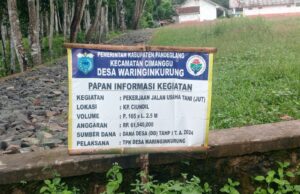 Dalam rangka meningkatkan perekonomian masyarakat, Pemerintahan Desa Waringin Kurung, Kecamatan Cimanggu, Kabupaten Pandeglang, Banten, saat ini tengah giat membangun pengerasan Jalan Usaha Tani (JUT) yang bersunber dari anggaran Dana Desa (DD) tahap satu tahun 2024 dengan nilai anggaran Rp.61 juta lebih.