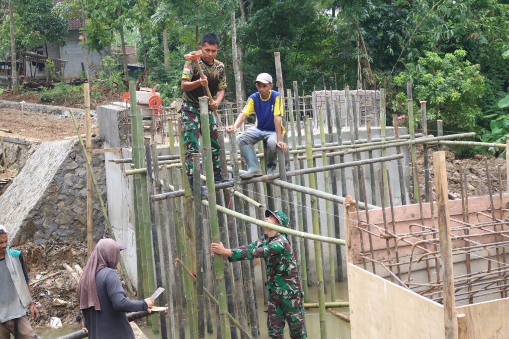 Satuan Penugasan (Satgas) TNI Manunggal Membangun Desa (TMMD) Ke-119 Kodim 0602/Serang membangun jembatan yang merupakan akses jalan bagi warga di Kampung Cisalak, Desa Bojong Pandan, Kecamatan Tunjung Teja, Kabupaten Serang dan Desa Bojong Cae, Kabupaten Lebak, pada Selasa (12/03/2024).