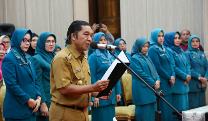 Ketua Pembina Posyandu Provinsi Banten Tine Al Muktabar mengukuhkan Ketua Pembina Posyandu Kabupaten/Kota se-Provinsi Banten. Pengukuhan dilaksanakan di Pendopo Gubernur Banten KP3B Curug, pada Kota Serang, Rabu (13/3/2024).