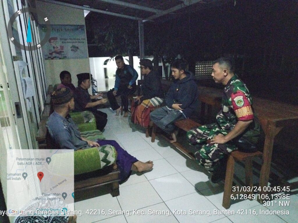 Babinsa Koramil 0602-01/Kota Serang, Serka Iman Bransah, menghadiri undangan musyawarah bersama Pimpinan Ponpes Modern Bait At Tauhid bertempat di Pondok Pesantren Modern Bait At Tauhid Lingkungan Jalan Raya Ciracas, Sepang Lingkar Selatan Batok Bali, Kelurahan Serang, Kecamatan Serang, Kota Serang, Provinsi Banten, pada Minggu (31/03/2024).
