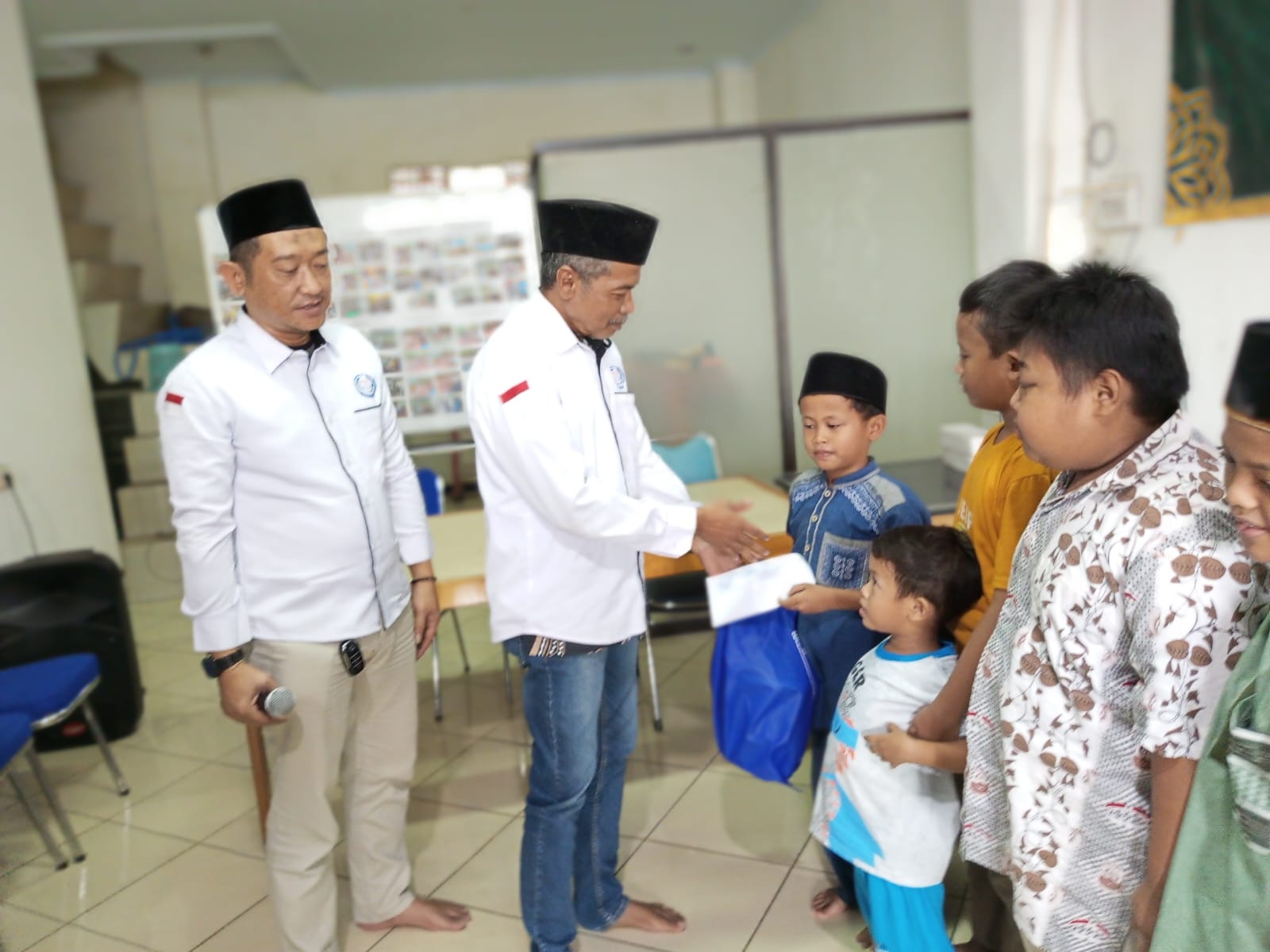 berbagi 100 paket sembako gratis dan santunan kepada anak-anak yatim piatu.