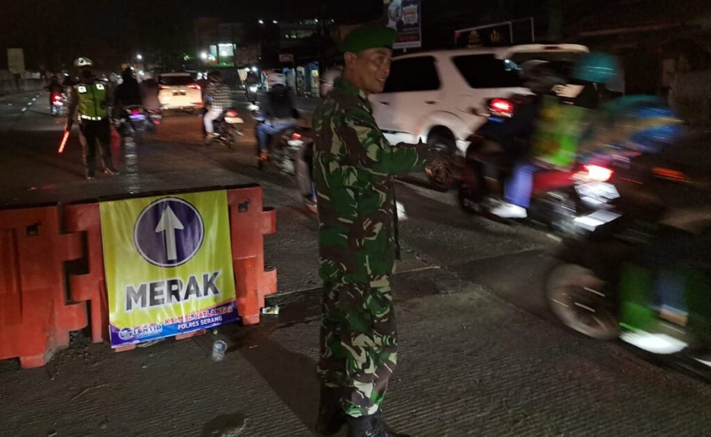 Masuki Mudik Lebaran, Anggota Koramil 0602-18/Kragilan Atur Lalu Lintas Bersama Aparat Kepolisian