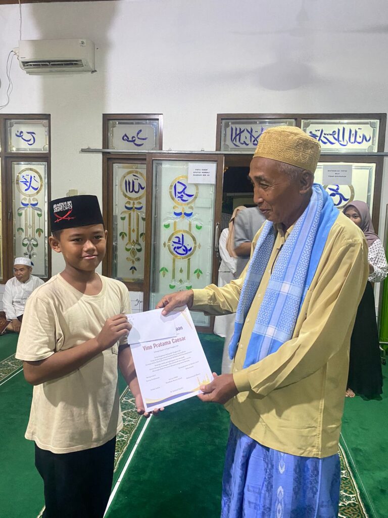 Remaja Islam Musholla Baitul Amal (Rimba) lingkungan Komplek Kecamatan Kramatwatu RT.04 – RT.05 /RW.01 Desa Kramatwatu, Kecamatan Kramatwatu, Kabupaten Serang, Banten, menggelar acara khataman Al-Qur’an 30 juzz dan sekaligus pemberian hadiah lomba gema ramadhan 1445 H/2024 M, tingkat SD dan SMP, pada Sabtu malam (6/4/2024).