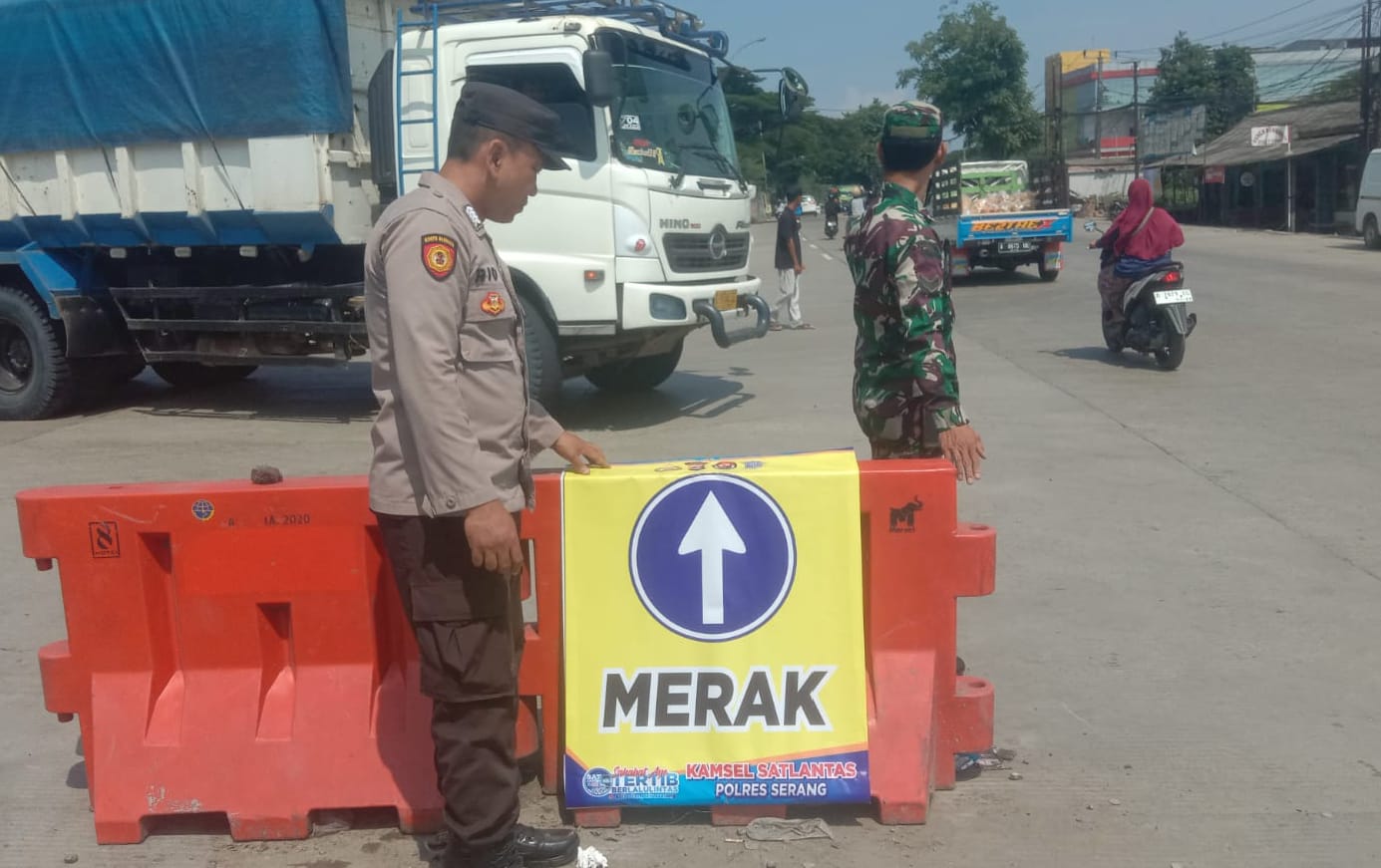 Prajurit TNI dari Koramil 0602-18/Kragilan, Kodim 0602/Serang, bersama aparat kepolisian selalu siap siaga untuk mengurai kemacetan arus lalu lintas di Pos Pengamanan Ciujung. Teemasuk mengamankan arus balik lebaran Idul Fitri 1445 H//2024 M, bertempat di wilayah Kecamatan Kragilan, Kabupaten Serang, Provinsi Banten, pada Minggu (14/4/2024).