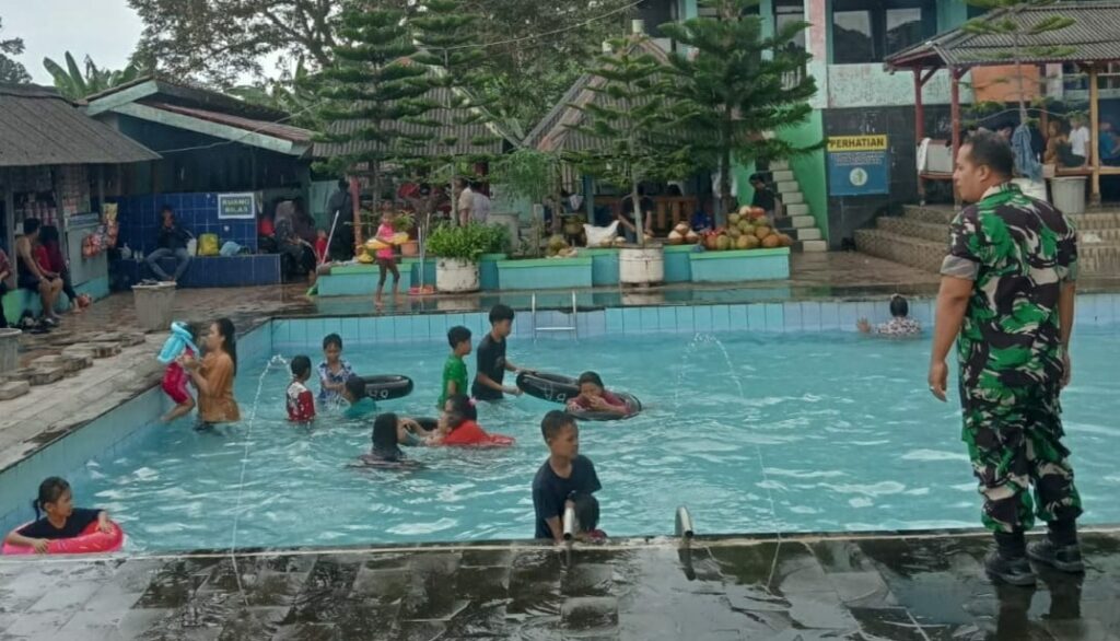 Babinsa Koramil 0602-13/Padarincang, Serda Aryadi Permana melaksanakan pemantauan dan pengamanan objek wisata di daerah Padarincang khususnya wisata Pemandian Air Panas bertempat di Desa Batukuwung, Kecamatan Padarincang, Kabupaten Serang, Provinsi Banten, pada Rabu (16/4/2024).