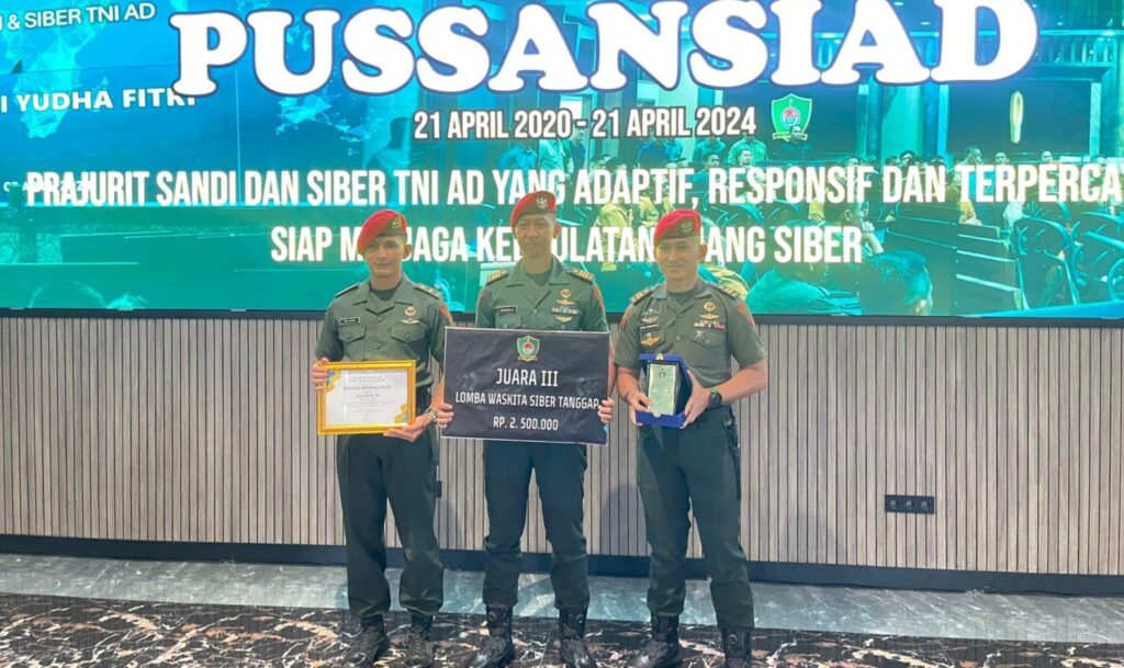 Komando Pasukan Khusus (Kopassus) kembali menunjukkan kemampuannya dalam bidang keamanan siber. Tim dari Grup 1 Kopassus berhasil meraih juara ke-3 pada Lomba Waskita Siber Tanggap yang diselenggarakan oleh Pussansiad dalam rangka HUT Pussansiad ke-4, pada Senin (22/4/2024).