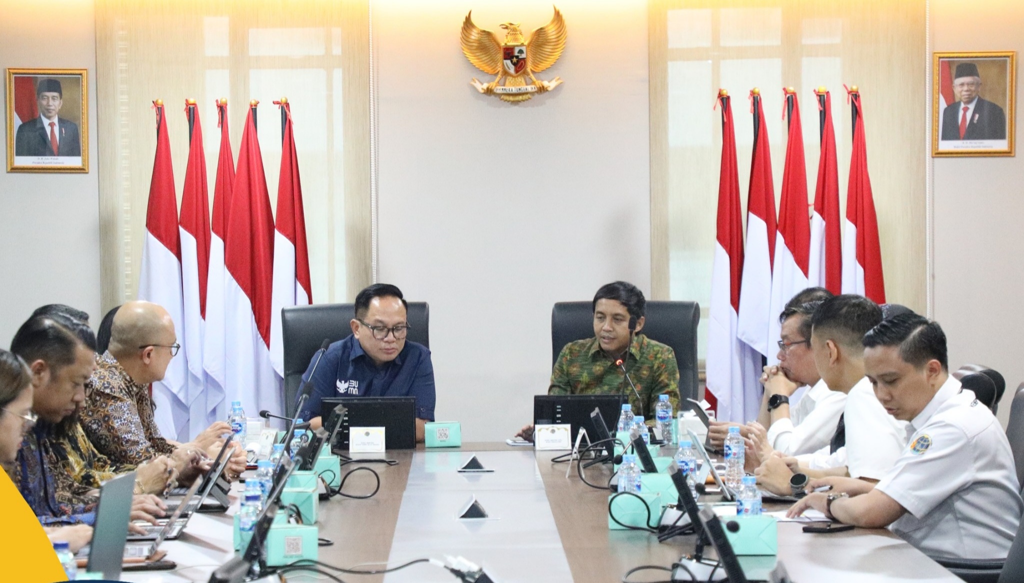 Wakil Menteri Agraria dan Tata Ruang/Wakil Kepala Badan Pertanahan Nasional (Wamen ATR/Waka BPN), Raja Juli Antoni menerima audiensi Wamen Kementerian Badan Usaha Milik Negara (BUMN), Kartika Wirjoatmodjo beserta jajaran, di Ruang Rapat 401 Gedung Kementerian ATR/BPN, Jakarta pada Selasa (23/4/2024). Audiensi ini terkait perubahan status hak lahan PT Pengembangan Pariwisata Indonesia atau Indonesia Tourism Development Corporation (ITDC).
