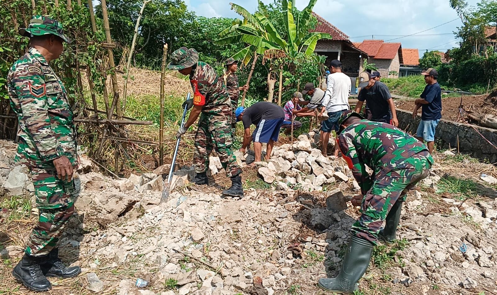 Setelah Puluhan tahun memimpikan adanya akses jalan, Bintara Pembina Desa (Babinsa) Koramil 0602-04/Taktakan Kodim 0602-Serang Sersan Satu (Sertu) Gaspar bersama 3 orang anggota Babinsa lainnya, juga warga setempat secara bergotongroyong melaksanakan kegiatan Karya Bakti (Karbak) rencana pembukaan jalan terdekat ke pemukiman, bertempat di Kampung Pabuaran RW 06 Kelurahan Lialang Kecamatan Taktakan, Kota Serang Provinsi Banten, pada Jum’at (26/4/2024).