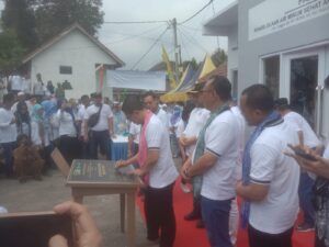 Memperingati hari air sedunia pada 30 April 2024, Walikota Cilegon, Helldy Agustian bersama Wakil Mendagri RI dan tokoh masyarakat, H. Abah Salim, Ketua DPRD Cilegon, H. Isro Mi’raj, menyerahkan bantuan Air Bersih Siap Minum di Kampung Linggarjati, Kelurahan Kepuh, Kecamatan Ciwandan, Kota Cilegon, pada Selasa (30/4/2024).