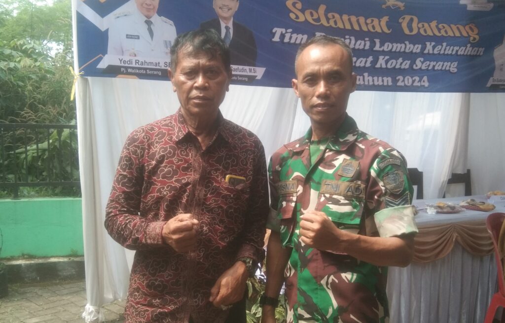 Komandan Koramil (Danramil) 0602-09/Cikeusal, Kodim 0602/Serang, Kapten Inf Edi Edy Sutawar, diwakili oleh Serma Sukisna, menghadiri acara kunjungan Tim Penilai Lomba Kelurahan Tingkat Kota Serang tahun 2034, bertempat di Kelurahan Cilaku, Kecamatan Curug, Kota Serang, pada Senin (27/5/2024).