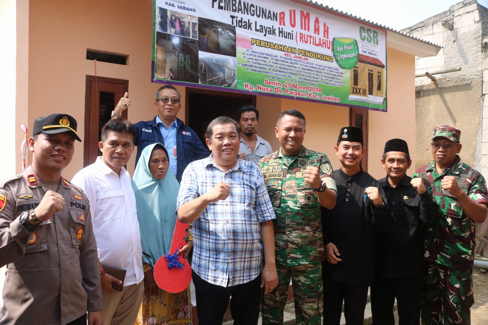 Komandan Kodim (Dandim) 0602/Serang Kolonel Inf Mulyo Junaidi secara resmi menyerahkan kunci rumah, program Pembangunan Rumah Tidak Layak Huni (Rutilahu) dalam rangka membantu pemerintah daerah di bidang kesejahteraan pembangunan, bertempat di Kampung Nusa Sabrang Desa Parakan Kecamatan Jawilan, Kabupaten Serang Provinsi Banten, pada Jum’at (31/05/2024).