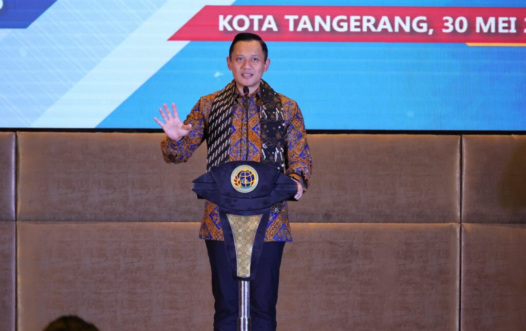 Menteri Agraria dan Tata Ruang/Kepala Badan Pertanahan Nasional (ATR/BPN), Agus Harimurti Yudhoyono (AHY) meluncurkan Implementasi Layanan Elektronik se-Provinsi Banten, bertempat di Hotel Novotel Tangerang, Kamis (30/05/2024). Dengan peluncuran ini, delapan Kantor Pertanahan di setiap Kabupaten/Kota se-Provinsi Banten siap melayani masyarakat dengan sistem elektronik.