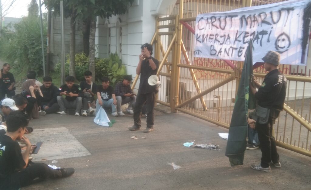 Aksi demonstrasi Mahasiswa yang tergabung dalam.wadah Kumala Perwakilan Serang itu sempat menerobos pintu gerbang Kejati Banten. Namun, mereka dihalangi oleh para petugas Kejati Banten.
