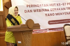 Bunda Paud Provinsi Banten, Tine Al Muktabar sebut tujuan Pendidikan Anak Usia Dini (Paud) ciptakan anak sehat, cerdas, ceria dan berkarakter. “Saya mengajak penyelenggara Paud berorientasi tidak hanya aspek bisnis tapi juga mendidik anak sejak dini,” ungkap Tine Al Muktabar, pada Peringatan HUT ke-67 PP-Paud GOPTKI dan Webinar Gerakan Transisi Paud ke SD yang Menyenangkan di Gedung Negara Provinsi Banten Jl. Brigjen KH Syam’un No.5 Kota Serang, pada Kamis (6/6/2024).