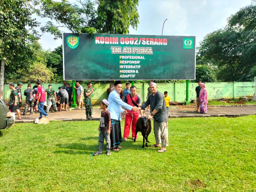 Satu ekor kambing yang diqurbankan tersebut, diperuntukkan kepada salah satu putranya. Dan adapun jumlah keseluruhan hewan qurban di Masjid Al-Aqsho Kodim 0602/Serang sebanyak 6 ekor sapi dan 6 ekor kambing.