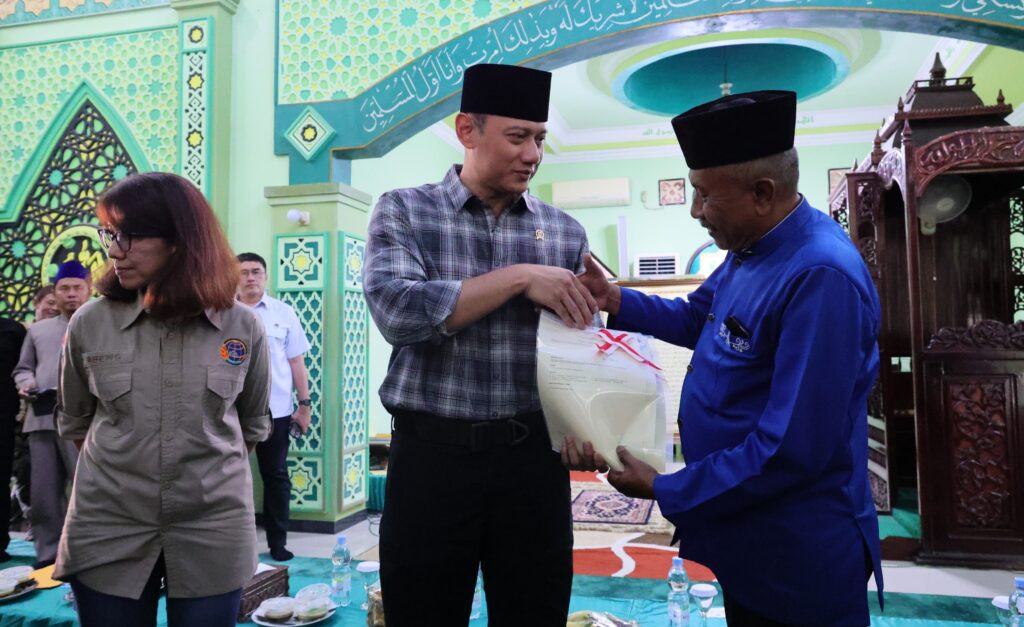 Menteri Agraria dan Tata Ruang/Kepala Badan Pertanahan Nasional (ATR/BPN), Agus Harimurti Yudhoyono (AHY) menyerahkan tiga sertipikat tanah wakaf milik Yayasan Babul Jannatul Firdaus di Masjid Araafiul A’laa pada Sabtu (22/06/2024). Pada kesempatan ini, ia memastikan komitmen pemerintah untuk memberikan kepastian hukum terhadap tanah-tanah wakaf.