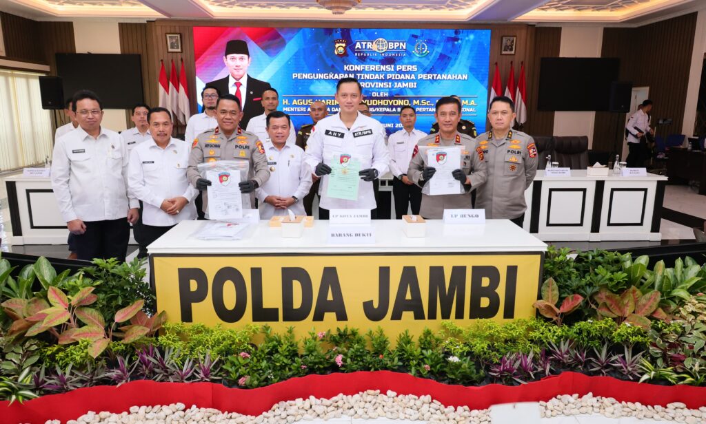 Potensi kerugian negara sebesar Rp 1,19 triliun berhasil dihindarkan berkat pengungkapan tiga kasus kejahatan pertanahan di Provinsi Jambi. Kasus tersebut diungkapkan Menteri Agraria dan Tata Ruang/Kepala Badan Pertanahan Nasional (ATR/BPN) Agus Harimurti Yudhoyono (AHY) dalam Konferensi Pers bersama Satgas Anti-Mafia Tanah di Gedung Siginjai Sakti Wira Bhakti, Markas Polda Jambi, Selasa (25/06/2024).