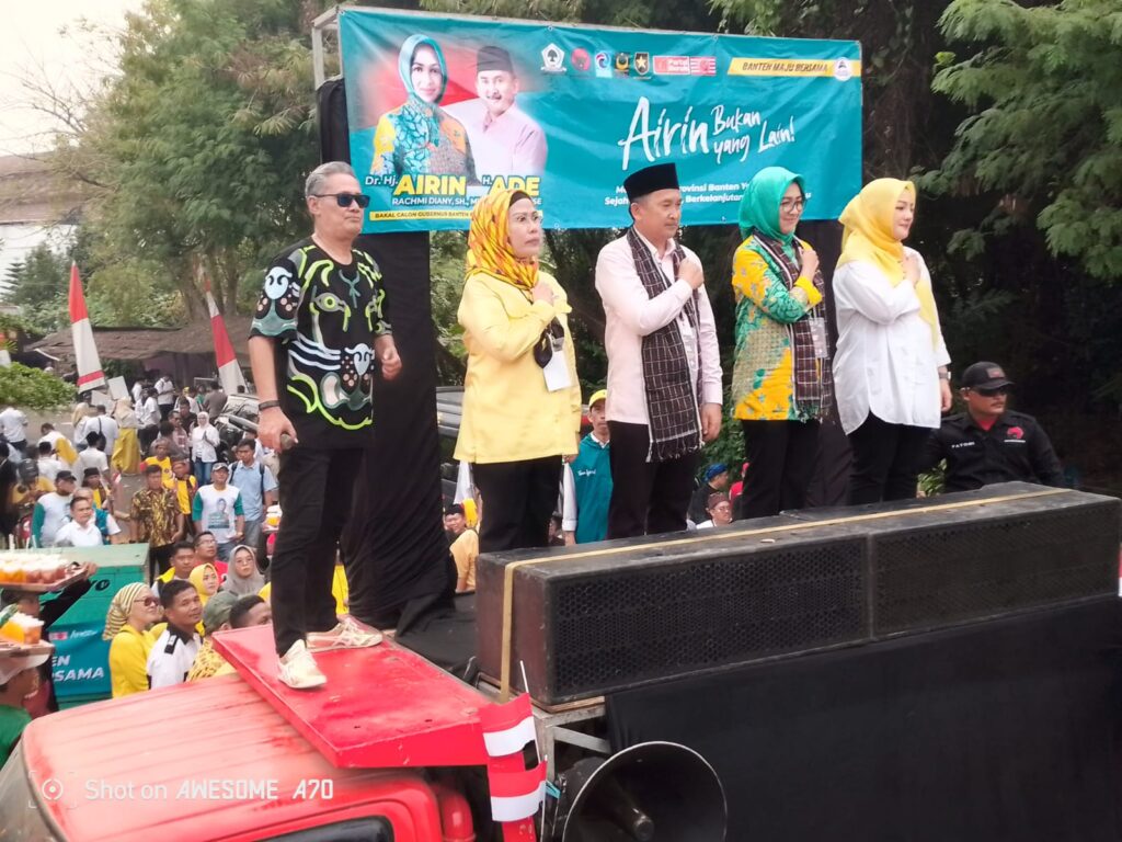 Dr. Airin Rachmi Diany, SH, MH, resmi mendaftarkan diri sebagai calon gubernur Banten di Komisi Pemilihan Umum (KPU) Provinsi Banten pada Rabu, 28 Agustus 2024. Dalam kesempatan tersebut, Dr. Airin yang didampingi oleh pasangan calon wakil gubernur, H. Ade Sumardi, M.Si., menyampaikan terima kasih kepada ribuan pendukung dari berbagai daerah seperti Kota Serang, Cilegon, Kabupaten Pandeglang, Kab.Serang, Kab.Tangerang, Kota Tangerang, Tangsel dan Lebak.