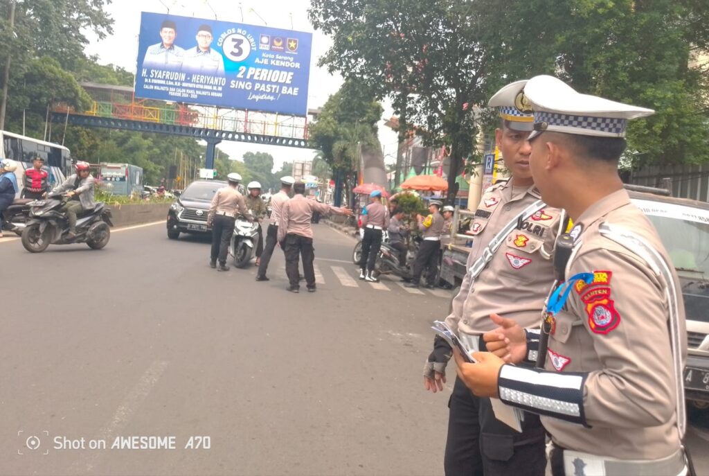 Wakasat Polres Serang Kota, IPTU Ade Komarudin, memimpin pelaksanaan Operasi Zebra Maung di Pos Kepolisian Lalu Lintas Alun – Alun Kota Serang pada Senin Pagi (14/10/2024). Operasi ini dilakukan serentak dengan tujuan utama meningkatkan disiplin masyarakat dalam berlalu lintas serta mengurangi angka fatalitas korban kecelakaan.