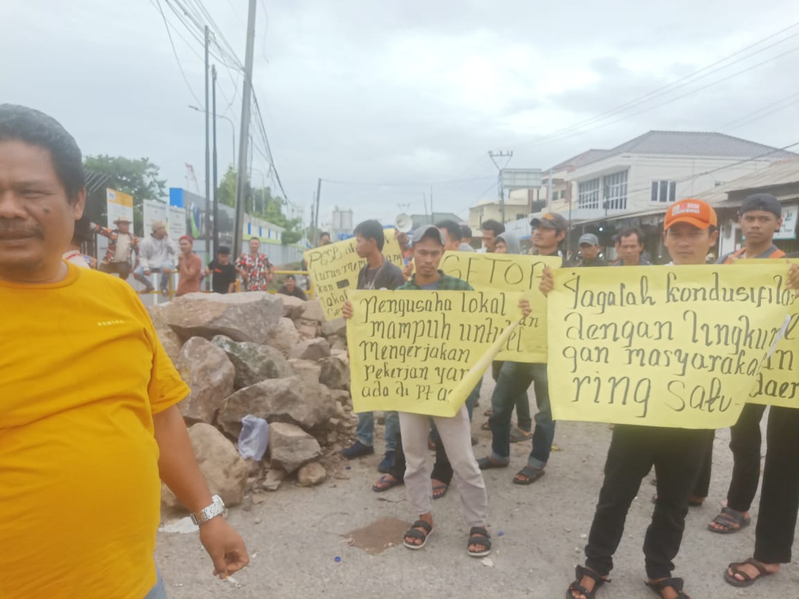 Tak ayal, akibatnya masyarakat Kelurahan Gunung Sugih bersama pengusaha lokal mengadakan aksi demo dan menutup akses pintu jalan PT. Asahimas Chemical dengan batu .