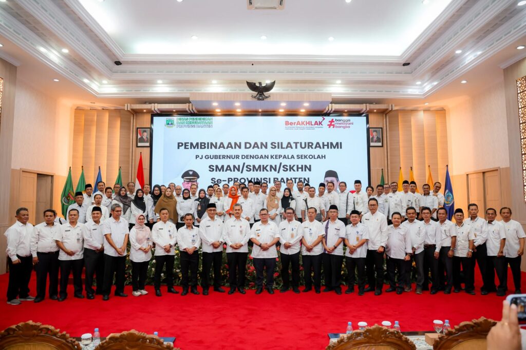 Penjabat (Pj) Gubernur Banten A Damenta melakukan silaturahmi bersama ratusan Kepala Sekolah (Kepsek) SMAN/SMKN dan SKhN di Pendopo Gubernur Banten, KP3B Curug, Kota Serang, pada Jum’at (27/12/2024). Para Kepala Sekolah harus mempunyai berbagai inovasi dalam pengajaran di sekolah agar tidak monoton.