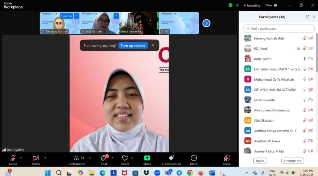Selanjutnya, Fitri menyampaikan praktik baik nilai integritas sangat penting dilakukan dalam kehidupan sehari-hari, bahkan dapat diimplementasikan pada saat menjalankan pekerjaan.