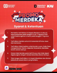 Untuk informasi lebih lanjut mengenai Promo Merdeka, masyarakat dapat menghubungi Contact Center KAI di 121, WhatsApp 08111-2111-121, email cs@kai.id, atau media sosial resmi KAI.