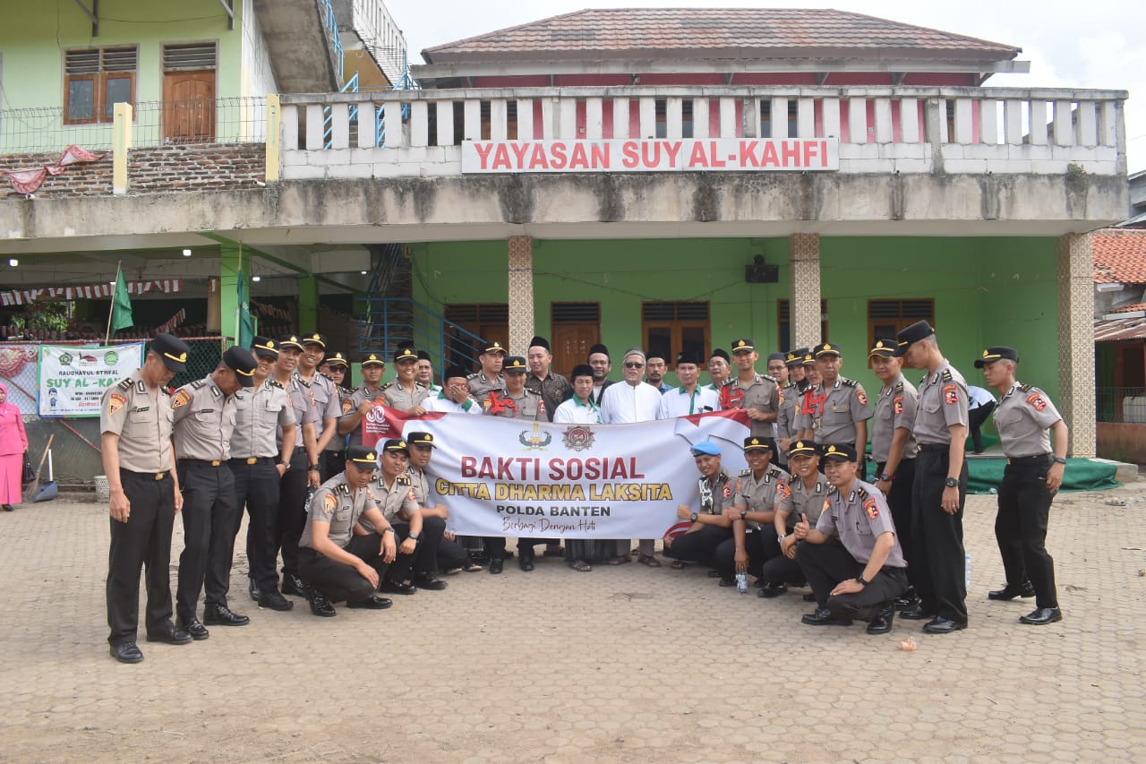 Sebagai wujud kepedulian sosial dan pengabdian kepada masyarakat sebanyak 24 siswa Sekolah Inspektur Polisi (SIP) Angkatan ke-54 Gelombang 2 Tahun Ajaran 2025 dari Polda Banten bersama Bhayangkari melaksanakan kegiatan Bakti Sosial (Baksos) di Yayasan Suy Al-Kahfi, yang berlokasi di Linkungan Baru RT 04 RW 04, Kelurahan Tamansari, Kecamatan Pulomerak, Kota Cilegon, Rabu (20/8/2025) siang.