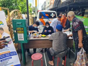 Pemeriksaan meliputi pengecekan tekanan darah dan kadar gula darah. Kegiatan ini bertujuan mendorong masyarakat agar lebih peduli terhadap kesehatan melalui upaya promotif dan preventif.