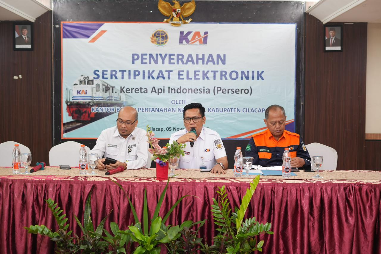 PT Kereta Api Indonesia (Persero) Daop 5 Purwokerto secara resmi menerima 10 sertipikat dari Kantor BPN Cilacap dan atas tanah milik KAI yang berada di wilayah Kab. Cilacap. Penyerahan dilakukan langsung oleh Kepala Kantor BPN Cilacap, Andri Kristanto, S.Kom., M.T., kepada KAI Daop 5 Purwokerto.