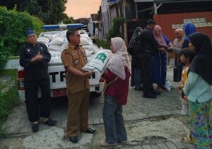 Pemerintah Kecamatan Walantaka Kota Serang menyalurkan bantuan beras kepada 289 warga yang terdampak banjir di Perumahan Gren Sutra,RT.01, 02, dan 03 RW.09,Kelurahan Teritih, Kecamatan Walantaka, Kota Serang, Banten. Pada Senin (22/12/2025).