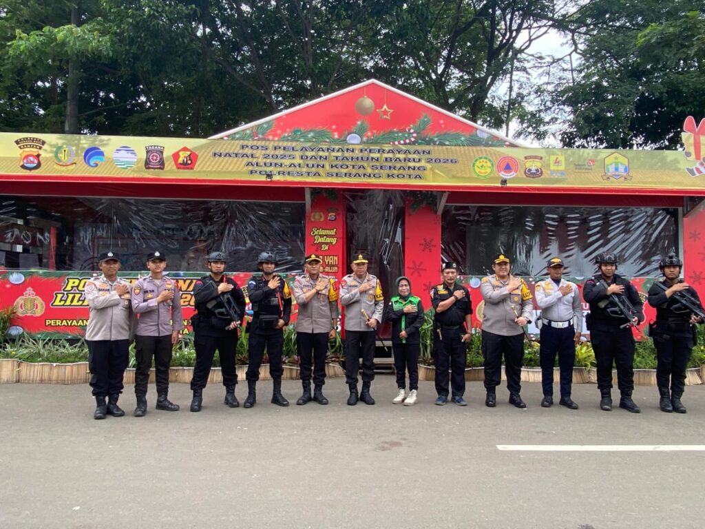 Pos Pengamanan dan Pelayanan (Posyan) Alun-Alun Kota Serang menerima kunjungan sekaligus pengecekan dari Kapolda Banten Irjen Pol. Hengki, S.I.K., M.H. bersama Kaporesta Serang Kota Kombes Pol. Yudha Satria, S.H., S.I.K., M.H. Pada Selasa, (23/12/2025).