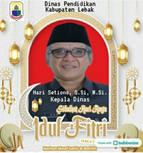 Kepala Dinas Pendidikan Kabupaten Lebak Mengucapkan Selamat Hari Raya Idhul Fitri 1445 H / 2024 M April 17, 2024April 17, 2024 Redaksi
