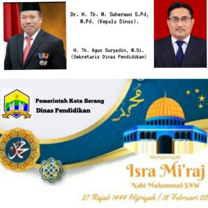 Pemerintah Kota Serang Dinas Pendidikan Mengucapkan Selamat Memperingati Isra Mi’raj Nabi Muhammad SAW 1444 H/2023 M February 16, 2023February 16, 2023 Redaksi