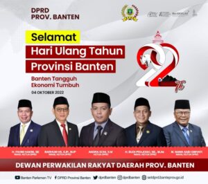 DPRD Provinsi Banten Mengucapkan Selamat Hari Ulang Tahun Provinsi Banten Ke-22 Tanggal 04 Oktober 2022 November 15, 2022November 15, 2022 Redaksi